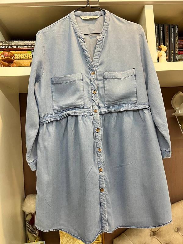 Легкое джинсовое платье с длинным рукавом