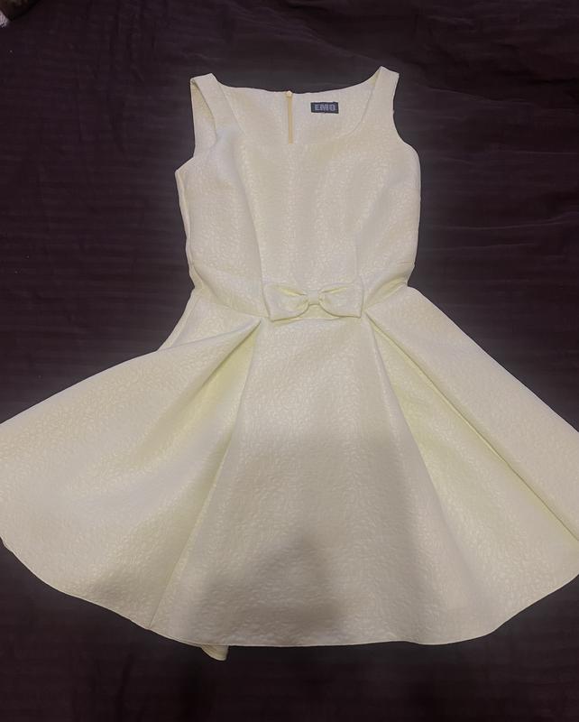 Плаття в лимонному кольорі, ідеальний стан, одягла один раз, на мене великий в грудях ( мій розмір 75б), дуже гарно сідає по фігурі, підкреслює талію ) довжина 74, інші заміри на фото )