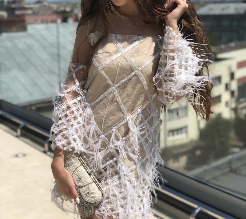 Очень красивое платье декорировано пайетками и перьями Размер xs Одягалось 1 раз Купляла за 3800