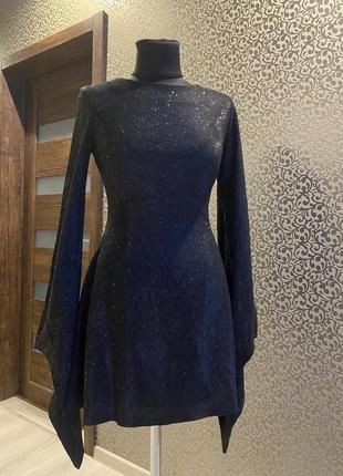В наличии такие размеры: S, M. На манекене размер S. Замеры размера S: Длина от плеча - 80 см. Объем груди - 83 см. Объем талии - 66 см. Бедра свободные. Рукав - 58 см. Замеры размера М: Длина (от плеча) - 83 см. Объем груди - 90 см. Объем талии - 70 см. Бедра свободные. Длина рукава - 60 см. Рукав ниспадает вниз.