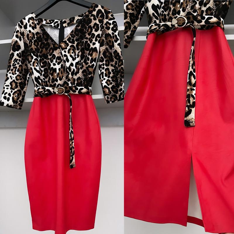 Красива сукня❤️ Стильный принт😍 Низ эко кожа, сбоку разрез 🤩 Поясок в комплекте. Отличное качество👌👌👌 Размеры: 44, 46 44: пог 42, пот 34, рукав 38, длина 88 46: пог 44, пот 35, рукав 40, длина 88см Цена со скидкой 650грн🔥🔥🔥