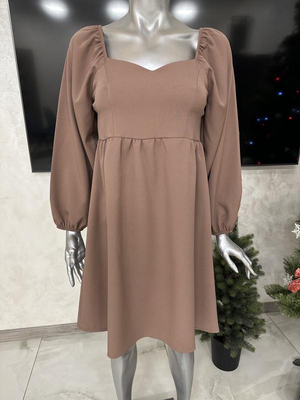 Очень красивое платье, рукава воланами. Новое, цвет мокко, ткань костюмная. Размер S. Замеры: длина от груди 74см, пог 43см, пот 40см, поб 65см, рукав 58см, должно садится свободно.