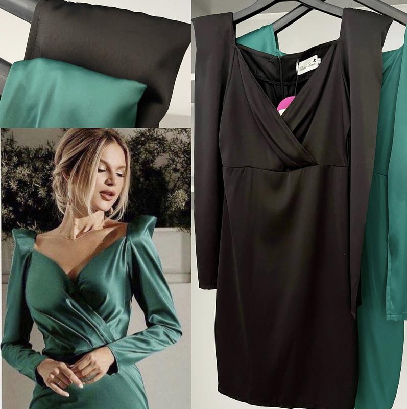 Стильное, очень красивое атласное платье В двух цветах: черный и зеленый💚🖤 Качество👌👌👌 Размеры: М, Л М: пог 42, пот 34, рукав 66, длина 84 Л: пог 44, пот 36, рукав 68, длина 85см.