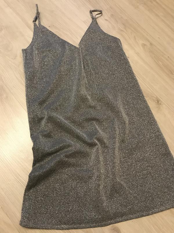 Мини платье серебристое с люрексом на бретельках которые регулируются ,має підкладку Довжина 80 на розмір S