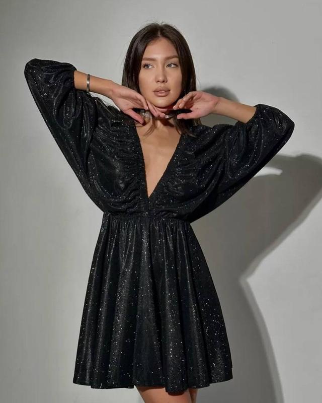 Это платье просто must have для всех событий 🖤 Идеально ложится на любую фигуру🥰 Тканина - люрекс Размеры - oversize (за счет резинки подходит от 42 до 50 размера) Цвета - черный