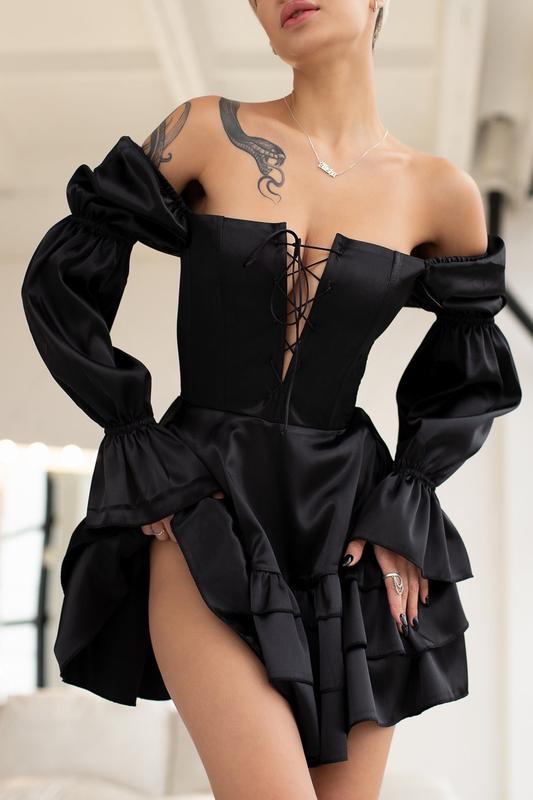 Роскошное платье из королевского атласа с пышной юбкой и воланами рукав буф объемный беби дол babydoll плечи открытые спущенные нарядная/святочная корсет шнуровка♥️ • Спереди платье имеет шнуровку, которую можно больше или меньше затягивать • материал - королевский атлас • В рельефы платья вставлены косточки • Глубокий квадратный вырез-декольте • Пышные длинные рукава на резинках - можно открывать плечи и наоборот •Застежка в среднем шве спинки на потайную молнию • 42,44,46 • Цвет: изумрудный, черный, синий, капучино, белый, беж, красный Можно по предоплате