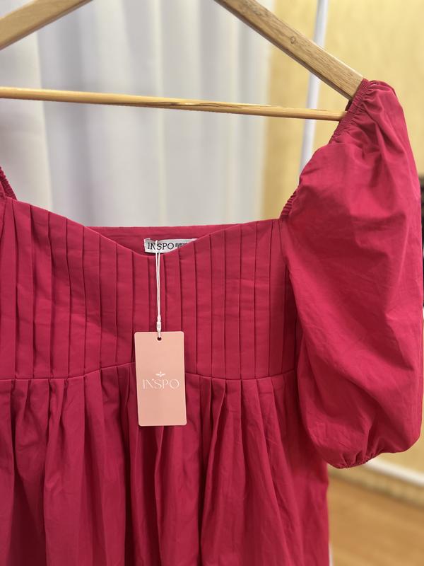 Новое платье, размер указан на бирке s С биркой Коротка , рукава фонариком Яркий малиновый цвет По дополнительным замерам размер задержитесь в лс