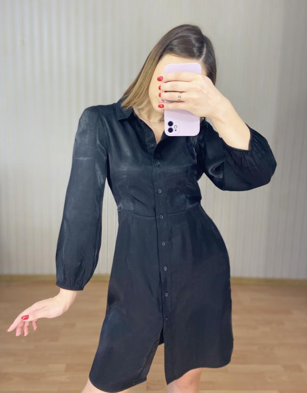 Черное платье-рубашка, из сатина, на вид напоминает шелк, 100% вискоза, размер xs