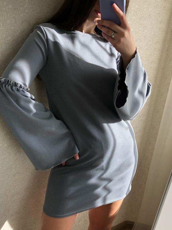 Платье люрекс голубо-серое рукава буффи объемные Размер С/М Длина 81 см Пог 44 см Пот 43 см Пос 46 см Рукава 61 см хорошо тянется!