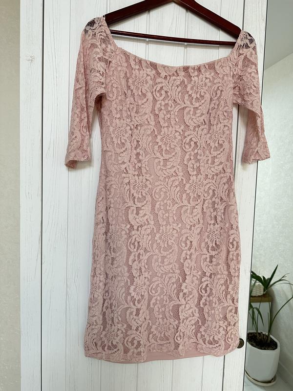 Кружевное платье бренда Mohito. Размер М. Вдоль всей зоны декольте есть силиконовая лента которая позволяет самой регулировать степень открытости зоны декольте - вы можете как опустить так и поднять плечики. Платье на подкладе, оно не светится. Сбоку же потайная молния. Длина около 70 см, талия 36 см. Она слегка тянется. Цвет пудровый.