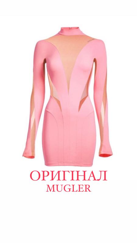 Рожева сукня з прозорими вставками плаття з сіткою плаття міні оригінал mugler x h&m розов...