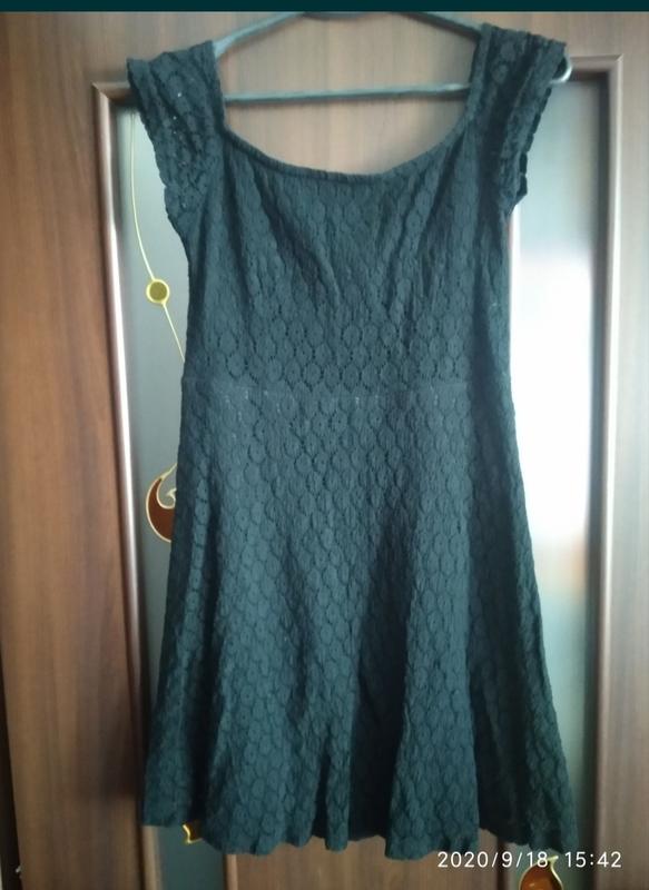 Красивое черное платье,короткое, летнее, разлетайочка, размер 42-44,вверх гипюровый.