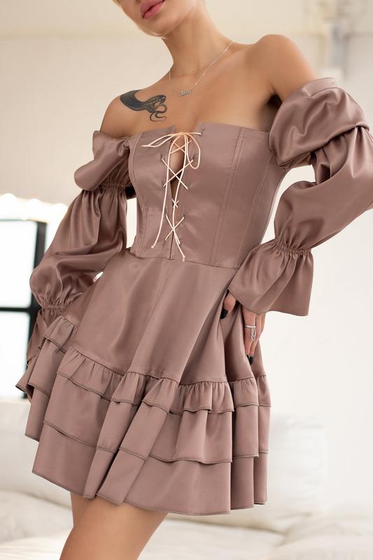 Короткое атласное платье с корсетом мини платье на завязках платье из атласа