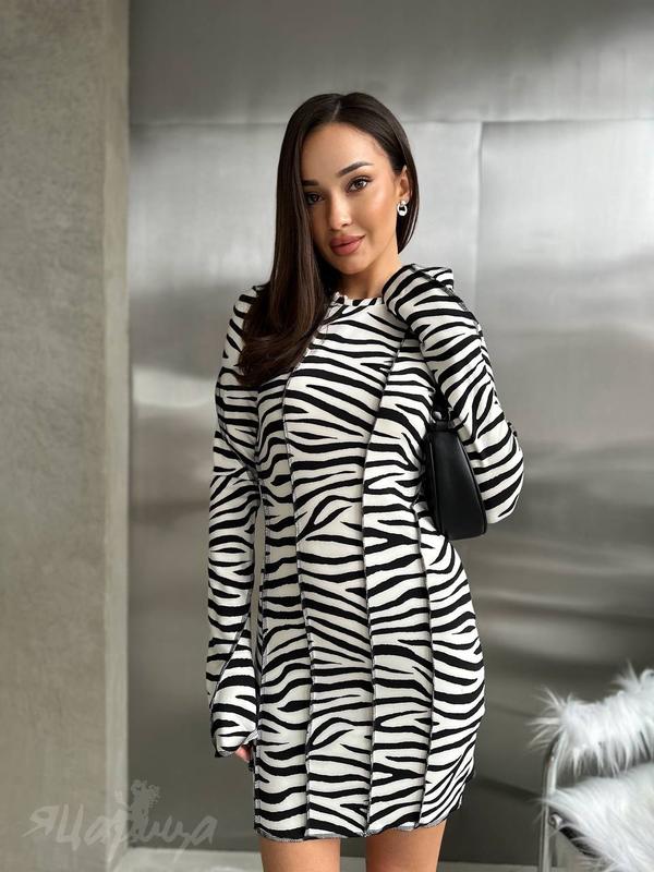 Сукня «різана»🤩🤩🤩 Модель: 301 Тканина: мікродайвінг на флісі(тепленька) Розмір: 42-44 , 46-48 Колір : принт «Зебра» 🦓🤩 ПАРАМЕТРИ (стрейч тканина): 42-44 / 46-48 ОГ 80-86 см / 86-92 см ОТ 64-70 см / 72-78 см ОС 88-94 см/94-100 см Рукав подовжений 72 см / 72 см Плече 5 см/5 см Довжина ,центр спинки 86см/86 см Зріст моделі на фото 170 😍🤪 Ог -85 см💃 От -63 см💃 Ос -90 см💃
