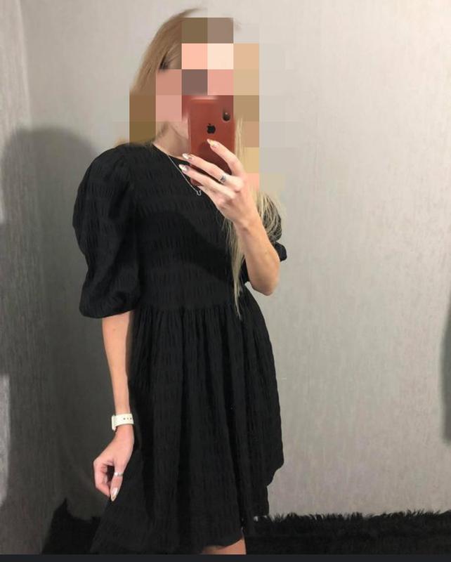 фактурное платье, рукавчик пуф, отрезная талия, ткань плотная не светится, не мнется, можно носить как с туфлями, так и ботинками и сапогами