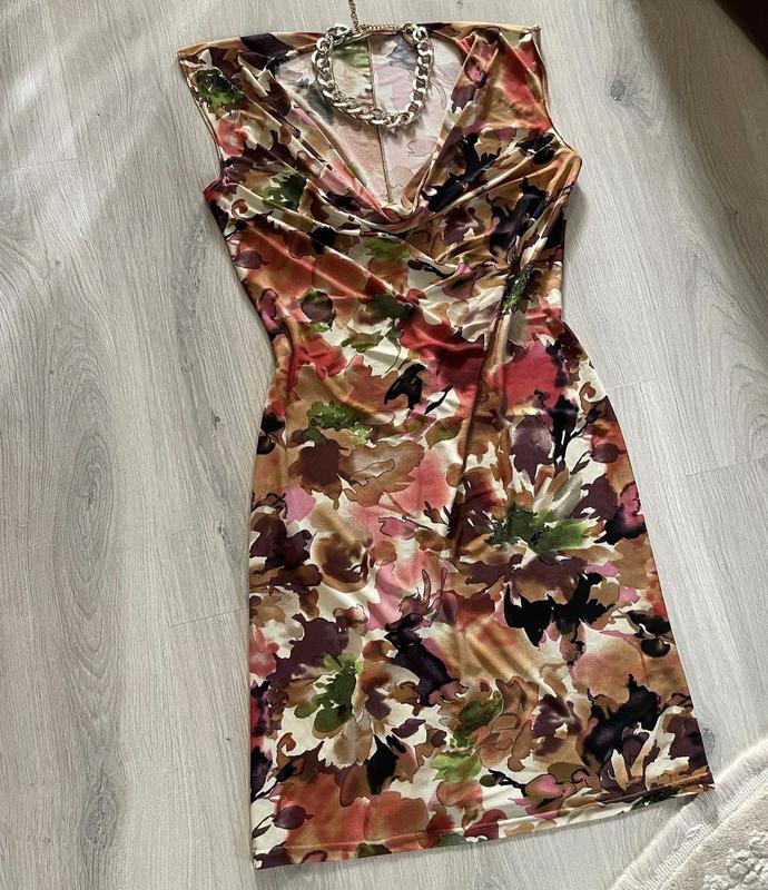 Красивое цветочное платье Тканина масло Красиво тянется Удобная, приятная к телу Гарна зона декольте Размер м-Л Состояние идеал