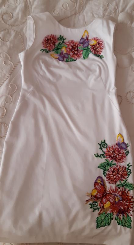 Платье из домоканного полотна, вышитое чешским бисером. Длина 100 см Ширина низ 57 см Талия 45 см