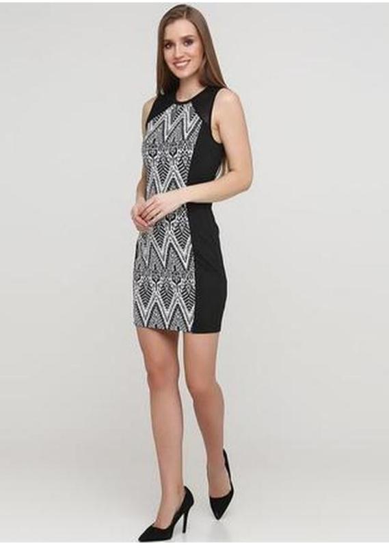 Черно-белое мини платье от бренда h&m с геометрическим принтом и сеткой