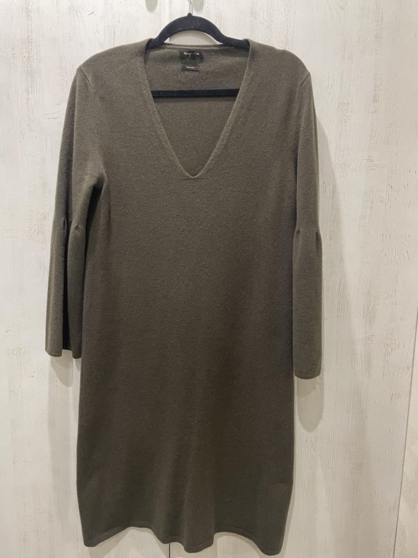 Теплое платье прямого кроя, рукав 7/8, расширенное. Состав на размер на фото