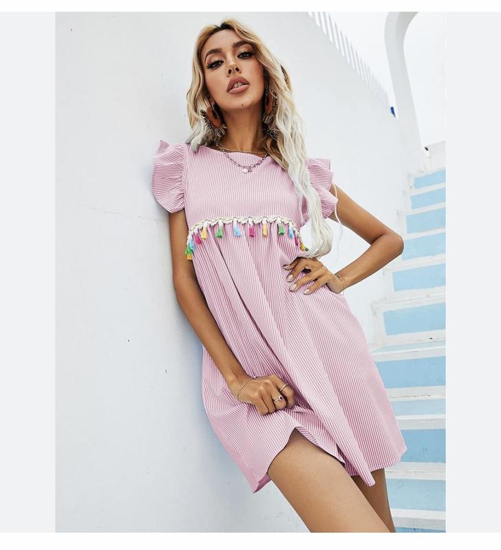 Входит в комплект «Семейный лук - мама и дочка» Легкое платьице в полоску, широкий бант на спинке Замеры: пог 45, бёдра ориентир 68, длинна 85