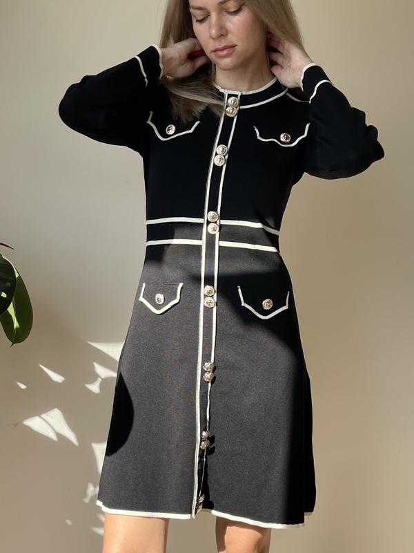 Новое трикотажное платье с декоративными пуговицами Трикотаж держит форму, не тонкий Рукав укорочений Размер one size, отлично будет на Хс, С, М Длина 92 см ПОГ 41 см Плечи 36 см Длина рукава 54 см