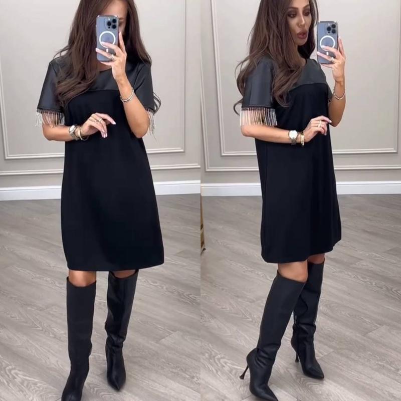 Сукня Модель: 0564 Цена: 740 грн🔥 Цвет: черный. Размер: 42-44,46-48,50-52 Ткань: Костюмка+эко кожа. 0564 42-44 Об г - 96 Об б - 106 Дл и - 91 Дл р - 17 46-48 Об г - 104 Об б - 112 Дл и - 92 Дл р - 18 50-52 Об г - 112 Об б - 118 Дл и - 93 Дл р - 19.рич