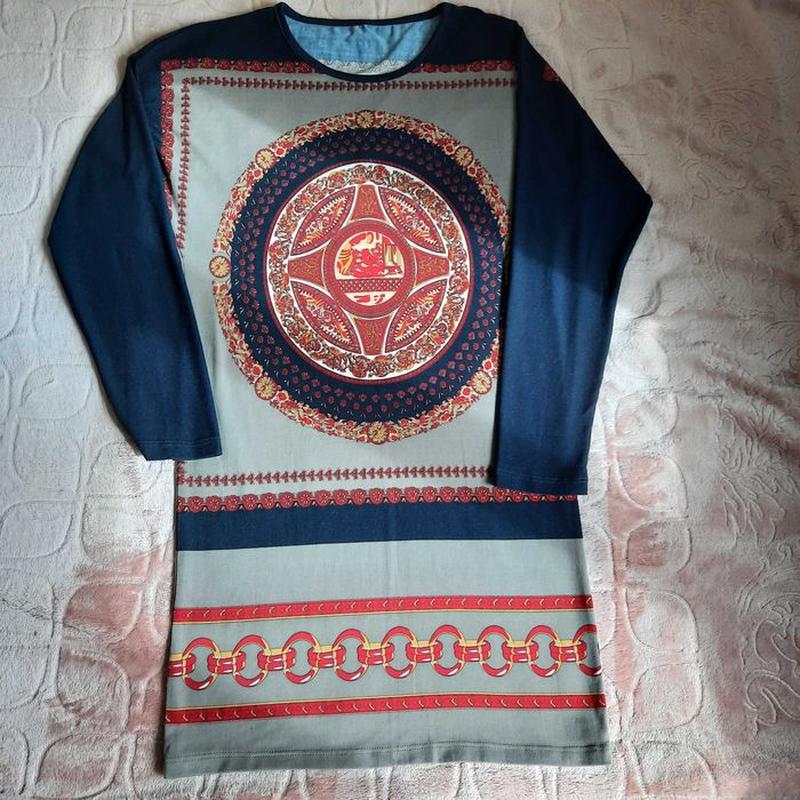 Синее платье/ туника с красивым орнаментом (длина 85см) Ткань приятная к телу, немного тянется, при этом не линяет, не кашлатится, не извлекается. Отличное состояние.