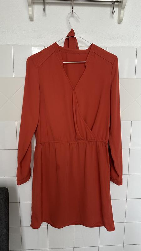 Платье очень качественное, новое, ткань напоминает креп, пасок в комплекте. Длина 96 см
