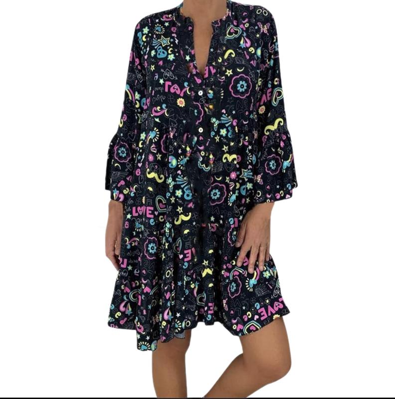 Это платье - не просто элемент одежды, это произведение искусства, сотканное из веселых цветов и энергии. Она подчеркнет вашу индивидуальность и станет идеальным выбором для любого мероприятия. Универсальный размер гарантирует вам комфорт и идеальную посадку. ✨ #Яркий Принт #УниверсальныйРазмер #Волшебная Сукня"