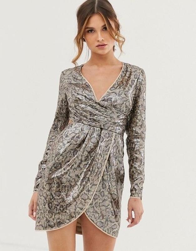 Дуже гарна сукня в анімалістичні принт з паєтками от asos Нова з етикеткою Розмір S Заміри Довжина 88 Рукав 58 ПОГ 43 ПОТ 35