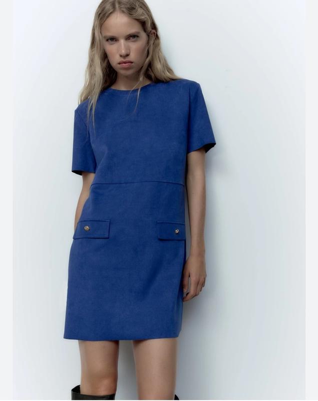 🌿синее платье А силуэта от Zara красиво держит форму Размер:S Замеры:ПО груди 46 см, длина 83 см