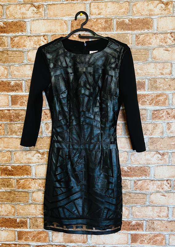 Платье со вставками из ено-кожи.Гарно садится по фигуре.И сама очень красивая. Стан идеален. Одягала один раз.