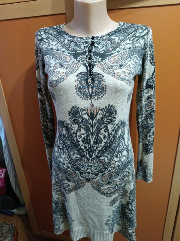 размир 38-40, ангора, шерсть, колir беж с принтом, замиры: плечи 37, грудь 44, талия 37, бедра 45, длина 80, рукав 62, э хлястик для паски, очень мягусечка