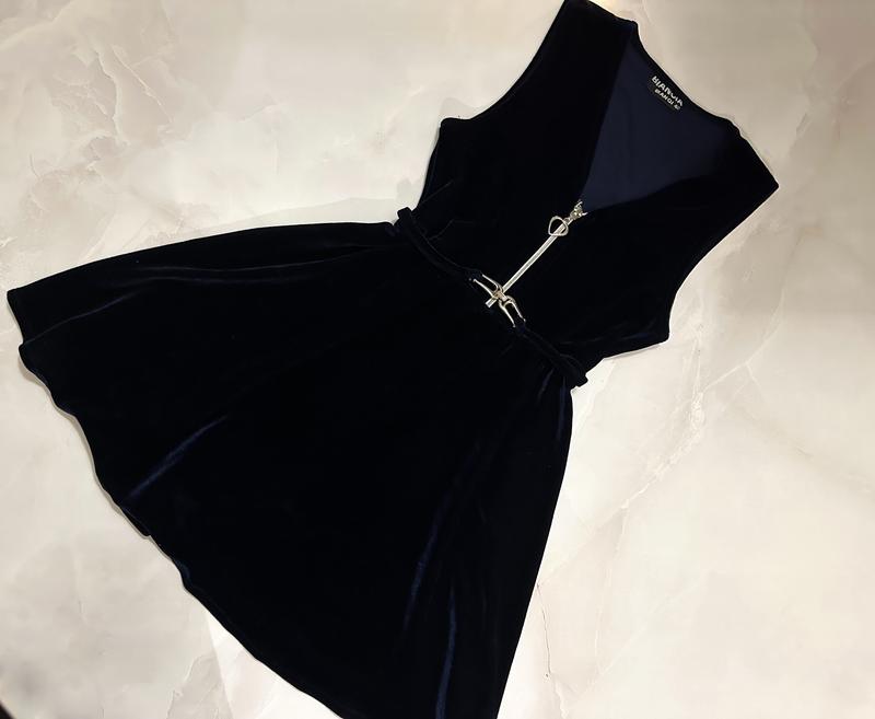 Бархатное мини женское велюровое платье темно синяя с декольте молнией
