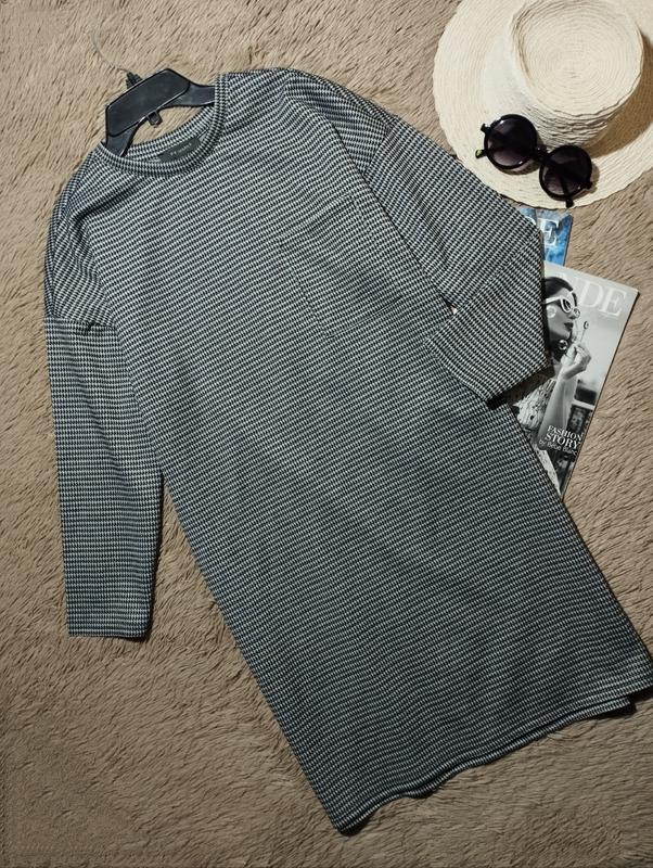 В идеальном состоянии. Красивое свободное платье с карманом. Ткань средней плотности, тянется. Выглядит супер 😍 Размер 12/40/L, но смотрите по замерам Замеры (полуобхват): Грудь 49-56 Талия 49 Стегна 51-61 Рукав от горловины 64 Длина от плеча 84