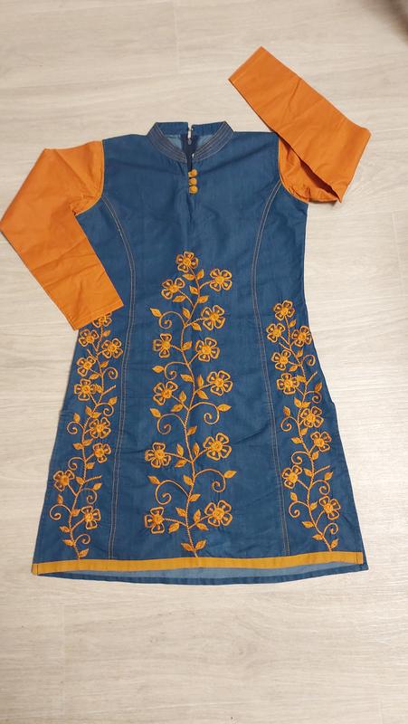 подарили, но она оказалась малой размер 38, но скорее всего 34: бюст 44 см талия 41,5 см бедра 49 см длина 82 см разрез 29 см рукав 49 см носится как туника