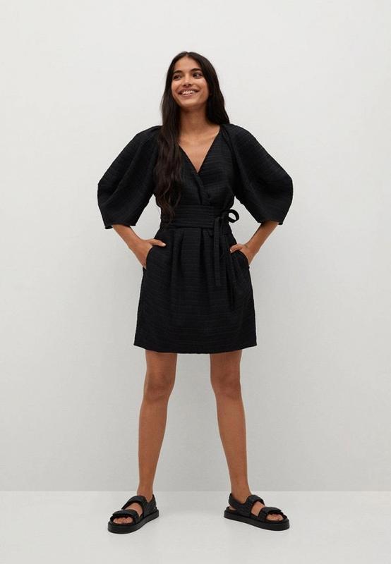Размер S Платье по типу кимоно, с объемными рукавами и длинным поясом, юбка на подкладке Состав: 78% пе, 21% вискоза, 1% эластан