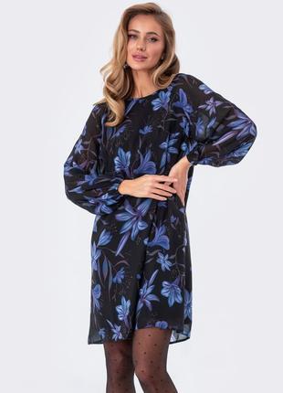 🔥Короткое платье из принтованного шифона. В изделии предусмотрена хлопковая подкладка. Модель с круглым вырезом горловины и рукавами "реглан". Застегивается на пуговицу. ✔Размер: 44,46,48,50 ▪️длина изделия – 92 см. ▪️длина рукава (от горловины) – 67 см. 🧵Состав: 100% полиэстер 🧵Состав подкладки: 100% хлопок 🎨Цвет: черный 🧵Материал: Шифон 💳Цена 1400грн Арт162337 ‼️Количество ограничено!!!️
