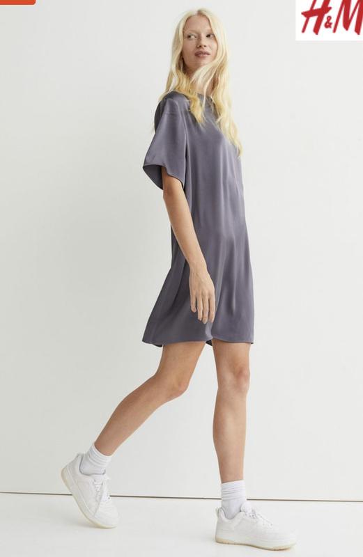 Классные сатиновые платья HM в маленьком размере xs. Фасон-футболка. Есть в сером и коричневом цвете. Состояние новых- стоковых товар (бирки срезаны)