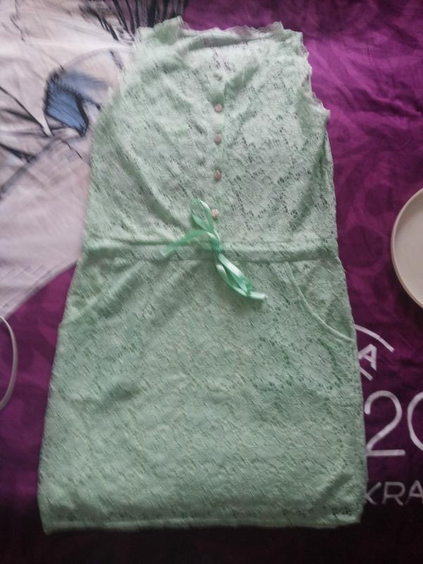 Кружевное платье,верх прозрачный,низ с подкладкой,цвет салатовый,талия на шнуровке,кармашки по бокам,длина 85см,ширина под мышками 44,талия 36см,можно распустить до 42см.Кружево целое,дырочек нет.Отличный вариант для моря.