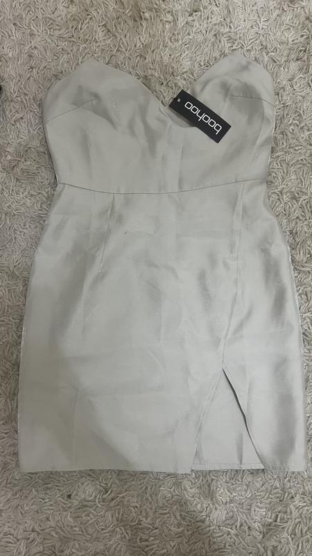 Платье в идеальном состоянии. На шею мотребная цепочка или шнурок, петли есть. Соблазнительный разрез. Мини пятнышка, которая выперется и мини затяжка незаметна в начале замка. Не тянется. Без торгу