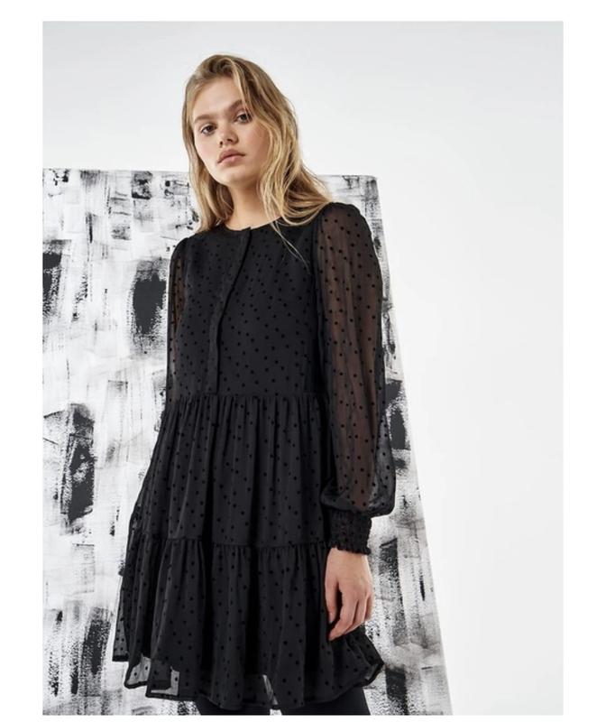 Одягнуте було 1 раз!! Стан новий ! Чорний колір в горох, розмір S Довжина -мини Поліестер
