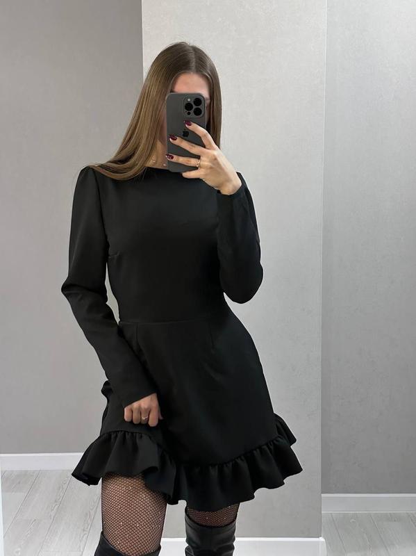 Платье мини короткая с вырезом на спине женская черная костюмка завязка длинные рукава пла...
