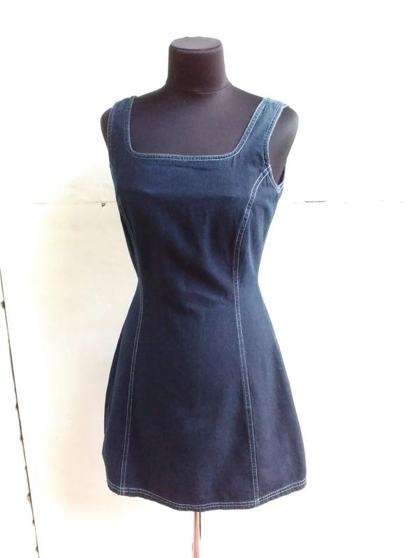Темно-синий джинсовый сарафан с белой отстрочкой. Очень тонкая и мягкая джинсовая ткань. По груди 44, по талии 32,5, по бедрам 46, длина 77 см, на небольшой рост. Новая Дарница, р-н Майдана, метро Левобережная, Дарница, Черниговская, Позняки, иногда Подол.