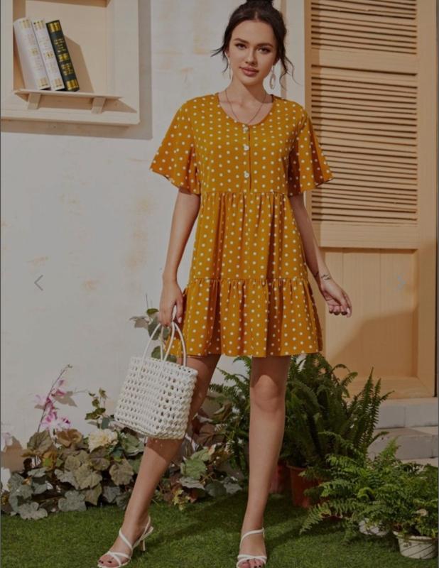 Стан ідеальний!!! Довжина- 88см Плечі- 38см Рукав від плеча- 26см ПОГ- 52см Застібається на грудях на 3 гудзика Колір гірчичний. В дійсності дуже крута сукня!