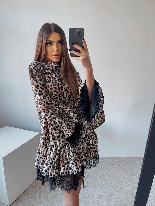 Сукня Мод 2064 Тканина софт Цвет Лео ОГ 108 см Длина 90 см Размер универсальный Пояс не вкомплекті
