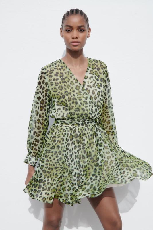 Платье Zara в анималистичный принт. Размер L. Замеры: длина 87см, от 40см, бедра -свободно. Есть подкладка. Состояние новой вещи.