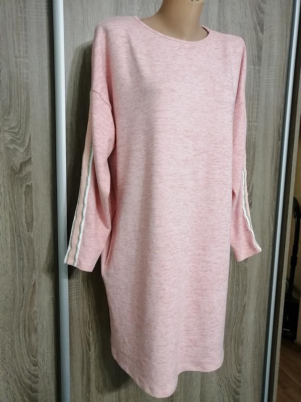 Трикотажное платье. Длина 90, рукав от горловины 67, пог 56, пот 53, поб 55