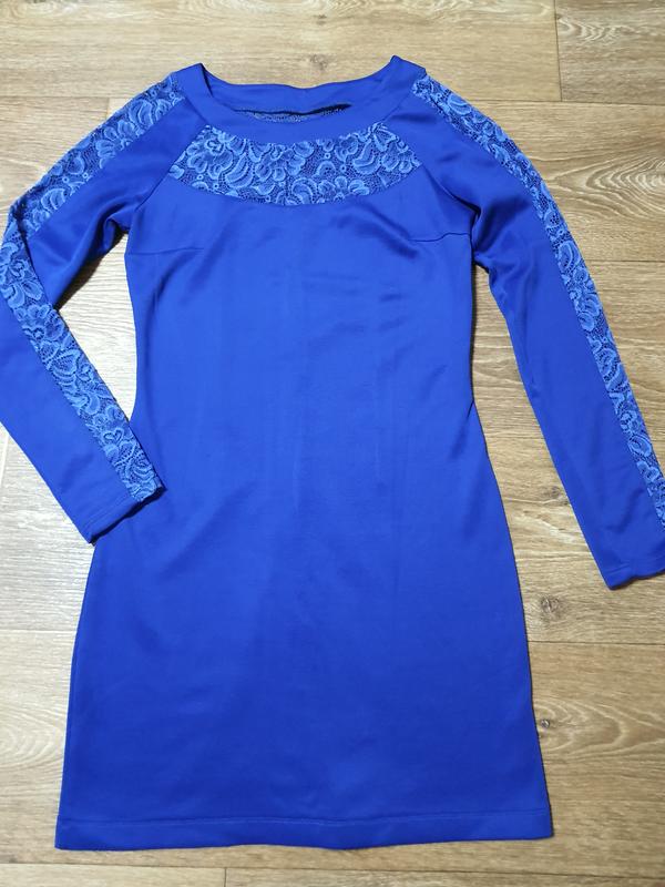 Платье с длинным рукавом. Вставки гипюр. Ткань - дайвинг.