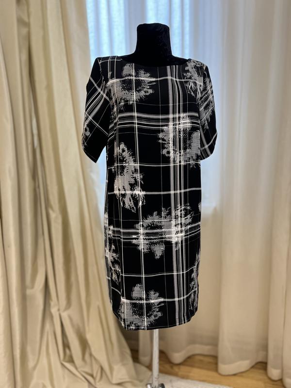 Платье на подкладке, привлекаемый фасон рукава (на йото показала), прямого свободного кроя, застежка из уди у горловины. Размер указан 38. Замеры: длина 80, плечи 38, пог 46, поб 49, прямого свободного кроя